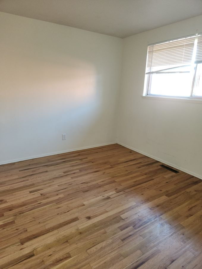 Duplex with 2 bedroom and 1 full bathroom. Beautiful hardwood floors throughout. Kitchen has eat in kitchen. New Windows, and newer Fridge. A newer bath tub/shower too. Bring your own washer and dryer. Includes a storage shed, and 1 car covered parking space off the street. Beautiful tree in the front yard. Tenant is responsible for yard, electric and gas. No animals, smoking or vaping on the property. Walking distance to Main Street for all your shopping needs. Minutes away from hwy 66.