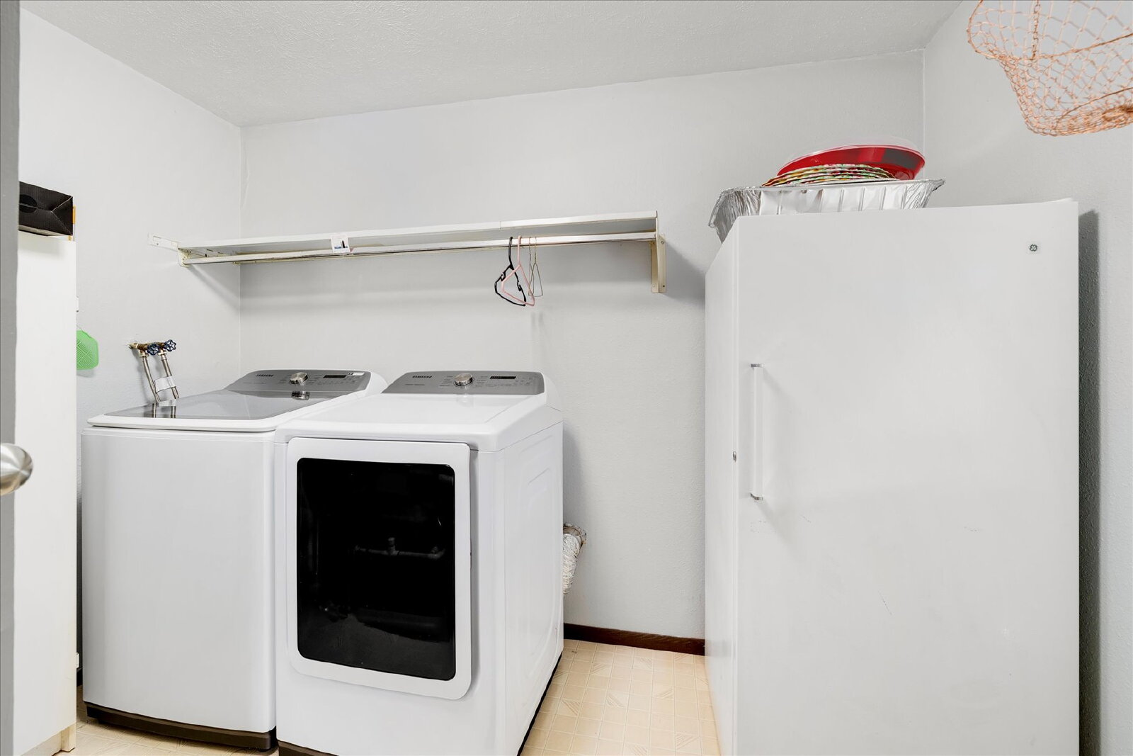 Washer and dryer included for added convenience.