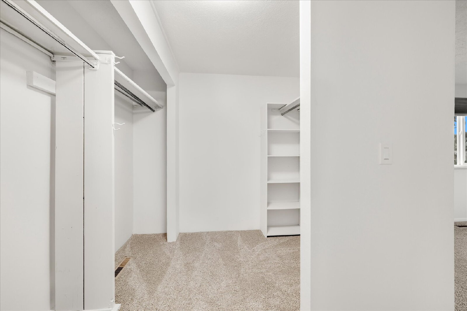 Walk-in closet in the master bedroom.