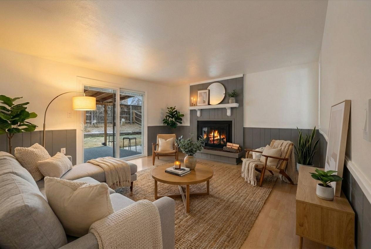 A cozy wood-burning fireplace.